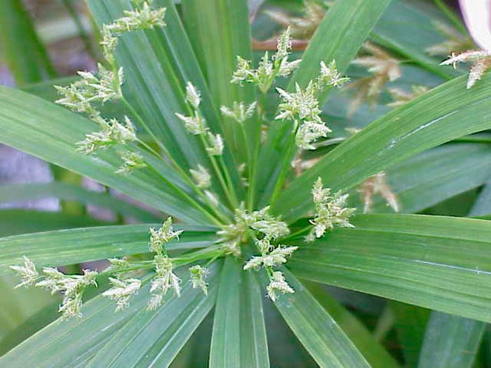- Kwitnienie . Cyperus jest uprawiany jako ozdobna roślina liściasta.