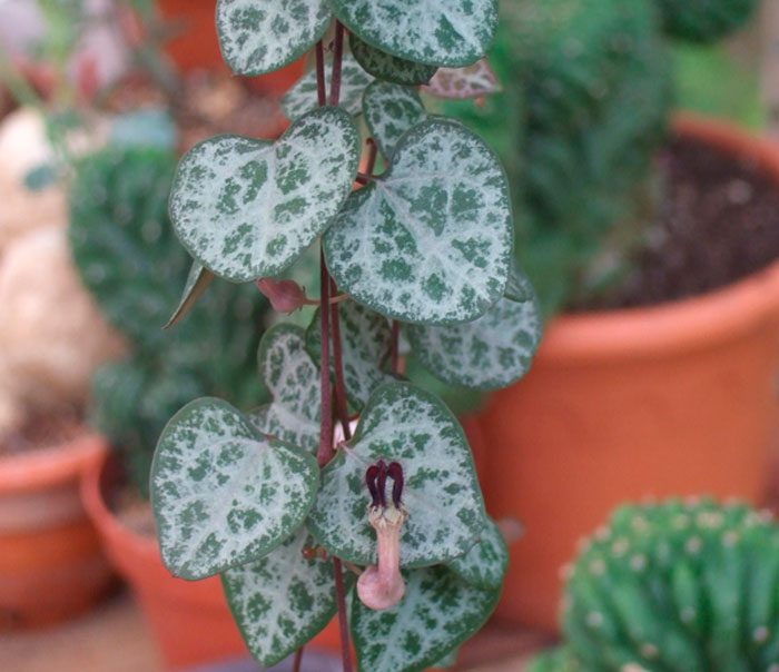 - Kwitnienie . Przy dobrej pielęgnacji i optymalnych warunkach wzrostu Ceropegia kwitnie prawie przez cały rok, ale jej kwiaty nie mają wysokiej dekoracyjności.