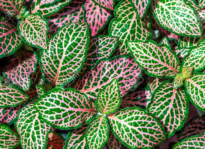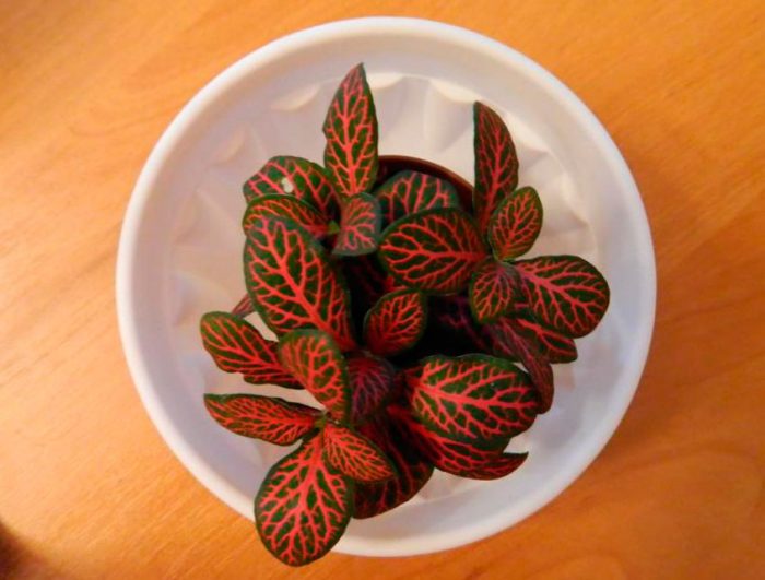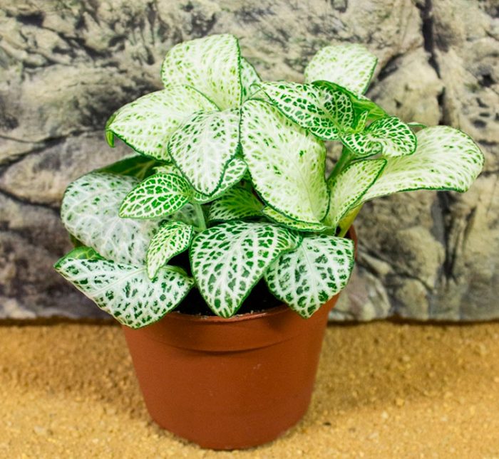 - Kwitnienie . Fittonia jest uprawiana jako ozdobna roślina liściasta.