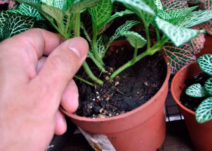 w razie potrzeby podczas przesadzania krzew można podzielić na kilka części, które sadzi się w pojedynczych doniczkach. Pamiętaj jednak, że musisz bardzo ostrożnie podzielić krzak, starając się nie uszkodzić systemu korzeniowego. Jeśli chcesz, aby twój krzew był bardzo bujny, posadź kilka fittonii w jednym pojemniku.