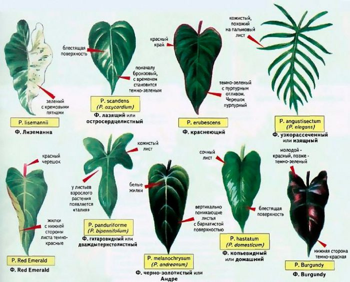 do zwartych gatunków należy filodendron brodawkowaty. Ma piękne ozdobne liście. Ale nie będzie w stanie rosnąć bez wsparcia. Filodendron Sello jest uważany za nie mniej atrakcyjny. Jego wysokość sięga 1,5 metra, a szerokość może rosnąć jeszcze bardziej, ponieważ ma duże liście o długości 80 cm filodendron w kształcie gitary jest bardzo piękny, którego liście przypominają znany instrument muzyczny.