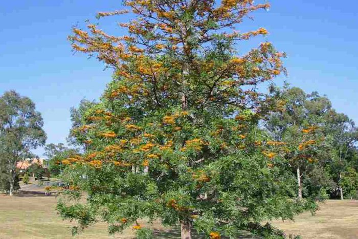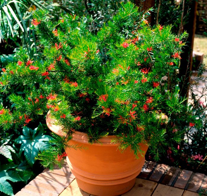 ta roślina jest szybko rosnąca i ma dość duże rozmiary. Regularne przycinanie, a także częste szczypanie końcówek łodyg, pomogą stworzyć zwarte drzewo o spektakularnej i bardzo schludnej koronie. A także pomoże powstrzymać wzrost Grevillea.