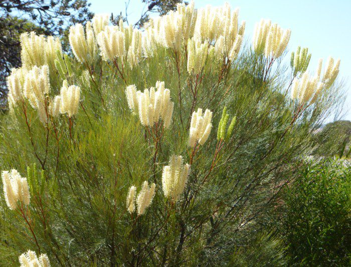 jest reprezentowany w postaci zwartego drzewa (wysokość do 5 metrów) lub krzewu. Niesparowane liście osiągają długość od 10 do 20 centymetrów i składają się z 4-11 całych płatów wąsko-lancetowatych. Gładka przednia strona liści jest pomalowana na zielonkawo-szary kolor, a Owłosiona zła strona jest srebrna. Czerwono-szkarłatne kwiaty są zbierane w kwiatostanach pachowych i wierzchołkowych o kształcie cylindra. Osiągają długość od 5 do 10 centymetrów. Charakterystyczną cechą długich słupków są ich wygięte dość duże końcówki. Dzięki nim kwiatostan ma wygląd kręconej szczotki.