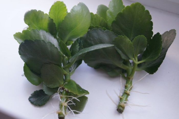 ponieważ większość gatunków Kalanchoe zrzuca stare płytki liściowe, takie pędy można w razie potrzeby odciąć i sadzić w tym samym lub indywidualnym pojemniku. W przypadku innych gatunków łodygi mogą przekroczyć krawędź pojemnika do sadzenia, w którym to przypadku można je również wyciąć i posadzić w pobliżu, ale nie można ich dotykać.