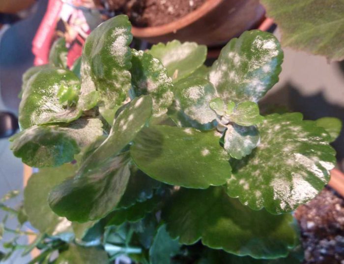 jeśli Kalanchoe, znajdujący się w chłodnym miejscu, jest nadmiernie obficie podlewany, może na nim tworzyć się pleśń. Mączniak prawdziwy może również wpływać na krzew, jeśli znajduje się w bardzo ciepłym miejscu i jest zbyt obficie podlewany. W niektórych gatunkach pędy mogą się rozciągać i obnażać, ale nie trzeba się martwić, ponieważ proces ten jest naturalny dla takiej kultury.
