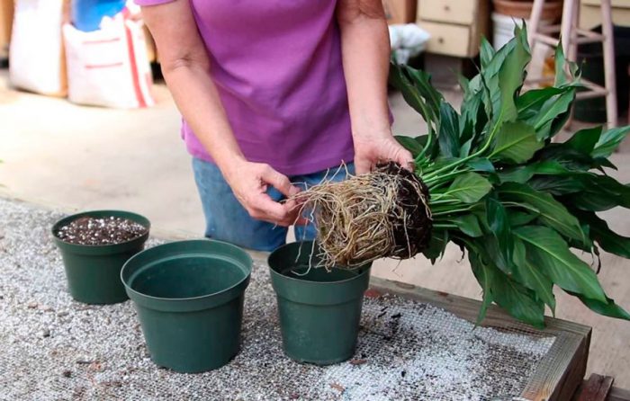 rozmnażanie spathiphyllum przez podział