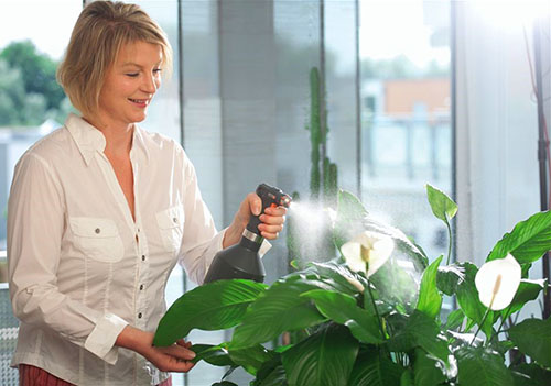 podczas uprawy w pomieszczeniach kultura wymaga systematycznego opryskiwania. Aby utrzymać wysoką wilgotność powietrza, zaleca się wlać mokre kamyki lub ekspandowaną glinę do miski i zainstalować pojemnik z kwiatem na górze. Latem może zorganizować ciepły prysznic. Należy pamiętać, że nawet jeśli kwiat jest systematycznie nawilżany dwa razy dziennie z butelki z rozpylaczem, końcówki jego liści mogą nadal wyschnąć. Kiedy krzew kwitnie, podczas zwilżania upewnij się, że wilgoć nie dostanie się na narzutę i ucho.