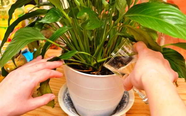 od wczesnej wiosny do września roślina będzie potrzebować regularnego nawożenia nawozami mineralnymi. W takim przypadku roztwór odżywczy powinien mieć słabe stężenie (na litr wody od 1 do 1,5 grama nawozu). Spathiphyllum dobrze reaguje na naprzemienne nawożenie nawozami mineralnymi i roztworem dziewanny (4-6%). Przed zastosowaniem nawozu, a następnie krzew będzie potrzebował obfitego podlewania.