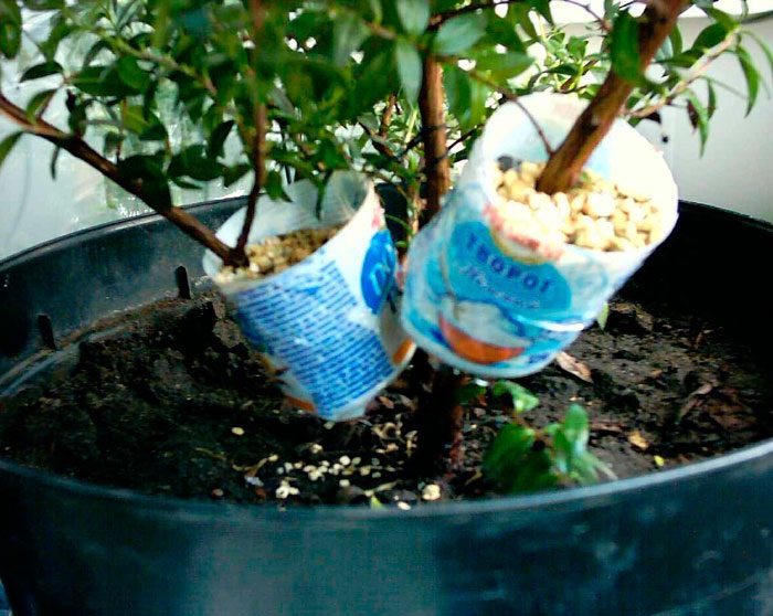 przed sadzeniem na dnie doniczki wykonaj warstwę drenażową o grubości od 30 do 40 mm, w tym celu możesz użyć dużych kamyków, ekspandowanej gliny lub styropianu.