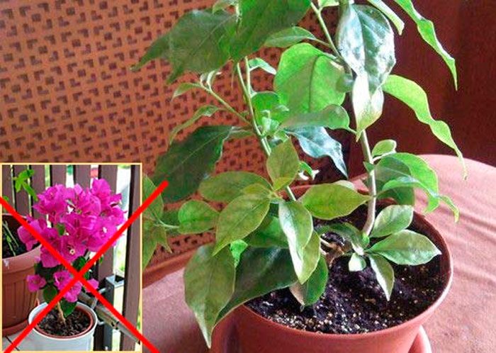 jeśli kwiatostany nie tworzą się w bugenwilli podczas uprawy w pomieszczeniach, oznacza to błędy w opiece lub w warunkach zatrzymania: