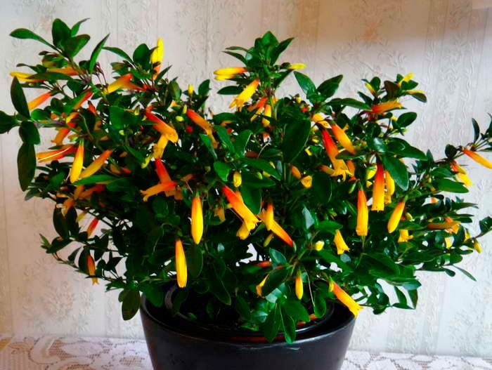 niezbyt wysoki krzew, z reguły nie osiąga wysokości większej niż 0,5 m. jego pędy są rozgałęzione, a kształt liści jest owalny. Taka roślina kwitnie bardzo bujnie i spektakularnie, ze względu na dwukolorowy kolor kwiatów: u podstawy są pomalowane na czerwono, a powyżej zmienia się na żółty.