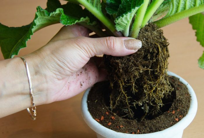 młode krzewy wymagają regularnego przesadzania, które należy wykonywać 1 raz w roku. Dorosłe okazy są przeszczepiane rzadziej, a raczej 1 raz na 3 lub 4 lata. Ta procedura jest przeprowadzana w pierwszych wiosennych tygodniach, w tym celu stosuje się szerokie niskie doniczki, które są wypełnione mieszanką gleby składającą się z liści i ziemi darniowej, a także piasku (4:1:2). Do przesadzania można również użyć podłoża składającego się z piasku, próchnicy, darni i ziemi liściastej(1:1:3:2). W tym celu możesz użyć podłoża sklepowego dla Saintpaulia. Aby uniknąć nadmiernego podlewania podłoża, należy wlać do niego niewielką ilość drobnego węgla drzewnego. Jeśli młoda roślina zostanie przesadzona, wówczas z mieszanki gleby konieczne będzie wykluczenie ziemi darniowej.