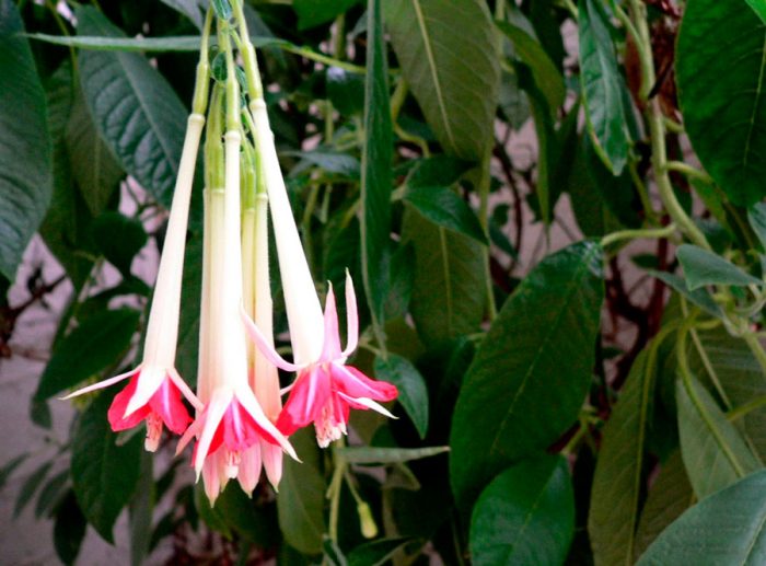 albo fuksja jest wielokolorowa (Fuchsia discolor), albo Fuksja stożkowa (Fuchsia conica).