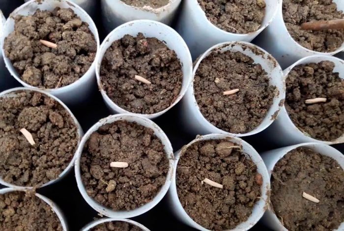 pojemnik jest wypełniony podłożem składającym się z węgla drzewnego, piasku i wermikulitu. Nasiona wymagają przygotowania przedsiewnego, w tym celu umieszcza się je w roztworze nadmanganianu potasu na 30 minut, a następnie utrzymuje przez kilka godzin w ciepłym roztworze cyrkonu. Nasiona należy rozprowadzić na powierzchni podłoża, a następnie przykryć cienką warstwą mieszanki gleby. Uprawy umieszcza się w ciepłym miejscu (od 33 do 35 stopni), tydzień później pojawią się sadzonki. Jeśli uprawy znajdują się w chłodniejszym miejscu, sadzonki mogą pojawić się później lub w ogóle się nie wydarzy. Kiedy roślina się pojawi, będą musiały być oświetlone lampami fluorescencyjnymi, będą również musiały zapewnić regularne wietrzenie, a Temperatura powietrza w pomieszczeniu powinna wynosić co najmniej 18 stopni.