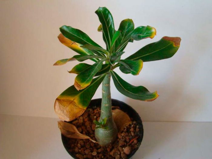 Adenium może zacząć tracić liście, ponieważ pokój jest bardzo zimny lub umieszczony w nietypowych warunkach, a także może się zdarzyć z powodu przeciągu. Aby uratować kwiat, musisz zacząć się nim odpowiednio opiekować.