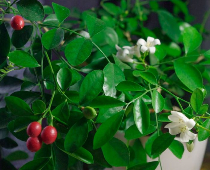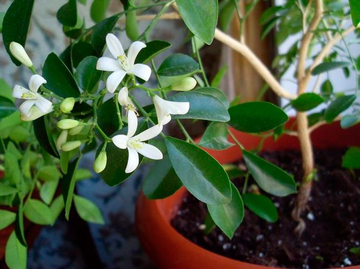 wiecznie zielone drzewa i krzewy Muraya lub Murraya (Murraya) są przedstawicielami rodziny Rutaceae. Ich ojczyzną są Indie, Indochiny, a także wyspy Jawa i Sumatra, podczas gdy ta kultura woli rosnąć w lasach deszczowych. Roślina ta została nazwana na cześć szwedzkiego botanika Johana Andreasa Murreya, który był uczniem Karola Linneusza. Ten rodzaj łączy 8 gatunków, ale tylko jeden jest uprawiany w domu, a mianowicie egzotyczna Muraya lub paniculata.