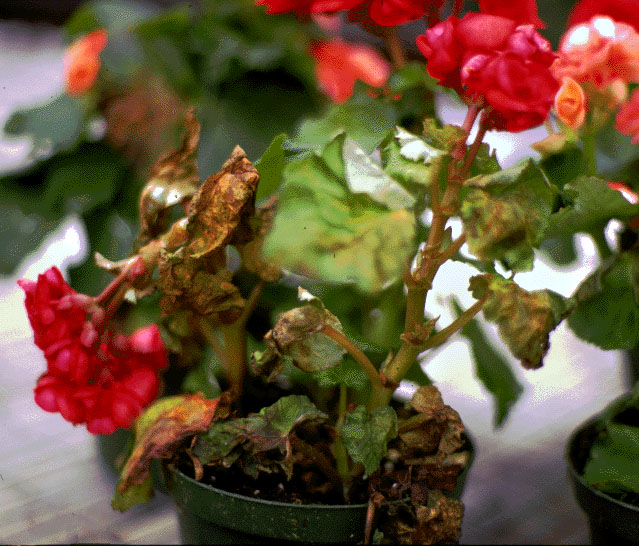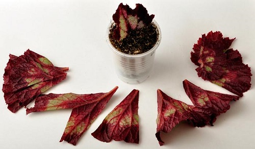czasami zdarza się, że płyty liściowe zaczynają wysychać. Powodem tego jest to, że w pomieszczeniu jest zbyt ciepłe i suche powietrze, a także zbyt rzadkie podlewanie. W takim przypadku należy podlewać begonię i umieścić ją w chłodnym miejscu, a doniczkę należy umieścić na odwróconej tacy (więcej o tym wspomniano powyżej).