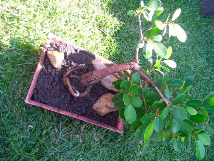 przeszczep taki kwiat tylko w razie potrzeby. U dorosłych figowców, a także rosnących w formie Bonsai, zaleca się 1 raz w roku jedynie wymianę górnej warstwy podłoża. Ta procedura jest przeprowadzana wczesną wiosną, w tym celu należy usunąć starą wierzchnią warstwę gleby i wlać świeże podłoże. Konieczne jest przeszczepienie takiej rośliny tylko wtedy, gdy korzenie przestaną pasować do doniczki.