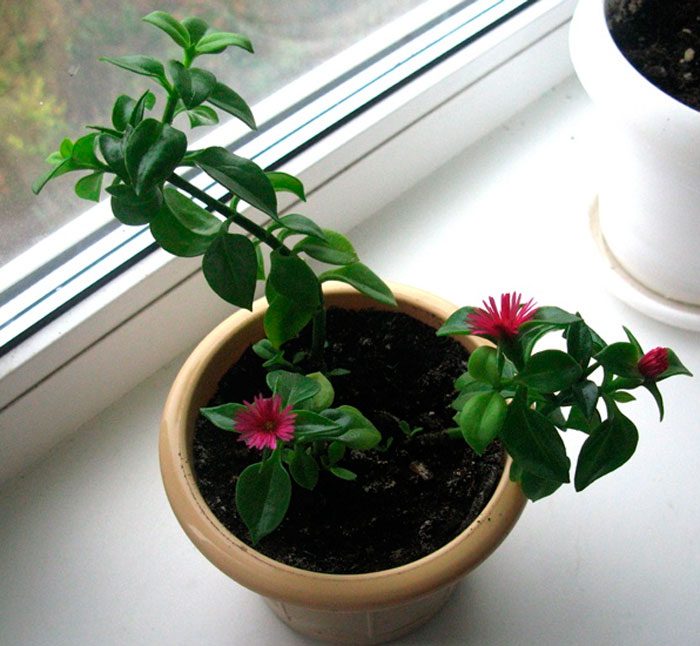 w porównaniu z aptenią serca ma mniejsze pędy i liście, jest to kulturowa odmiana aptenii.