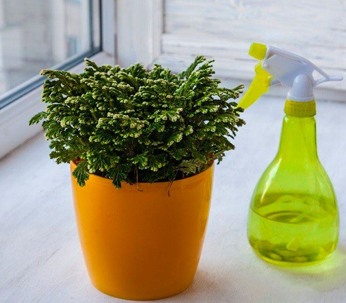 upewnij się, że podłoże w pojemniku nie wysycha bardzo, zwłaszcza jego środkowa warstwa. Regularnie poluzuj jego powierzchnię, aby poprawić napowietrzanie. Od czasu do czasu w przypadku selaginelli można zorganizować taką procedurę: gdy nadejdzie czas podlewania, krzew wraz ze zbiornikiem zanurza się w misce wypełnionej wodą, której temperatura powinna być nieco wyższa niż temperatura pokojowa. Płynne nawozy są również dodawane do wody. Ta okrywowa pochłonie tyle składników odżywczych i wilgoci, ile potrzebuje. Po pewnym czasie roślina jest wyciągana z miednicy i czeka, aż nadmiar płynu spłynie z doniczki. Następnie krzew jest ponownie umieszczany na swoim stałym miejscu.