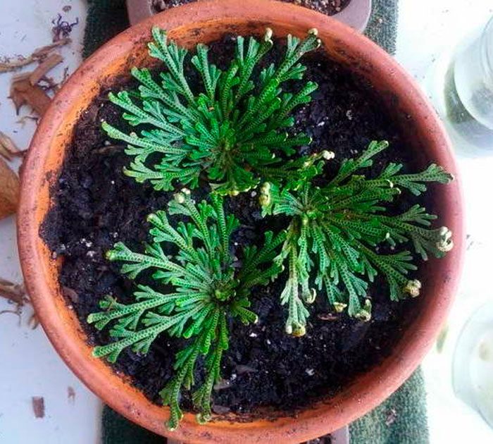 ten gatunek różni się od reszty swoją niezwykłą osobliwością. Jego ojczyzną są tropikalne pustynie Meksyku Chihuahua. W naturze podczas długiego suchego i gorącego okresu w tej okrywie obserwuje się zawieszenie procesów życiowych, a sam krzew zwija się w kłębek. W tym stanie krzew może być niezwykle długi, do 100 lat, a gdy tylko Warunki znów staną się korzystne, ożyje. Dzięki tej funkcji kwiat miał drugą nazwę - "róża Jerycha", a także"Zmartwychwstały kwiat". Po wyschnięciu kwiat ten jest przechowywany w szafie, ponieważ ma zdolność odstraszania różnych owadów, w tym ćmy. W stanie suchym roślina ta może być przechowywana przez sto lat. Taką niezwykłą roślinę w specjalistycznym sklepie można kupić w stanie suchej plątaniny (kryptobioza). Po powrocie do domu i zanurzeniu krzewu wraz z doniczką w wodzie natychmiast ożyje. Zmieni się bardzo szybko, dosłownie w tej samej godzinie jego gałęzie szybko się wyprostują i zmienią kolor na zielony. Po bardzo krótkim czasie (około 24 godzin) sucha plątanina stanie się spektakularnym bujnym krzewem. Jego liczne pędy zostaną pokryte wiązkami rozciętych małych płyt liściowych.