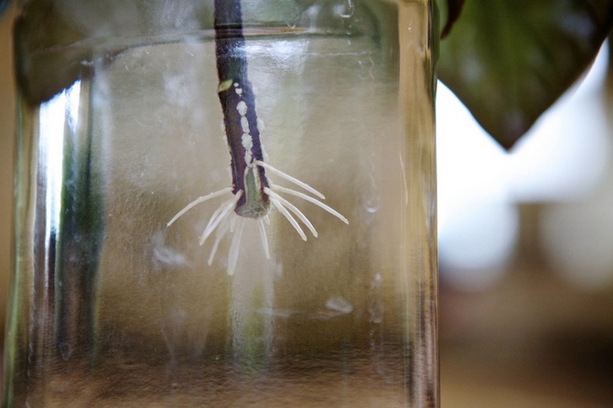 aby ukorzenić takie sadzonki, możesz wziąć szklankę wody. Ale należy go umieścić w bardzo ciepłym miejscu(od 25 do 28 stopni).