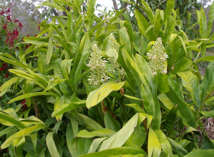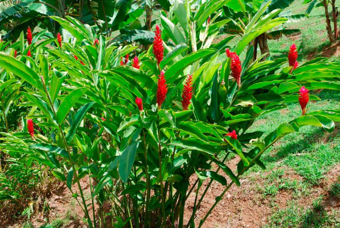 kwiatostany wierzchołkowe mają kształt racemose, Kłos lub wiechy i noszą duże kwiaty. Kolor kwiatu jest biały, czerwony lub żółty. Kwiatostany mogą zwisać w dół lub być skierowane pionowo w górę (w zależności od gatunku). Owoc jest prezentowany w postaci pudełka. Jeśli płyta arkusza zostanie zmielona lub rozerwana, możesz poczuć specyficzny zapach. Istnieją rodzaje alpinizmu, w których kłącza są używane w medycynie wschodniej. A taki kłącze jest używany jako przyprawa.