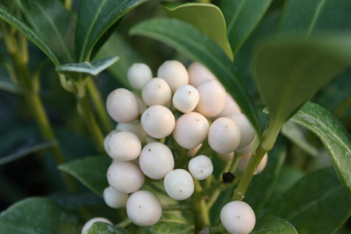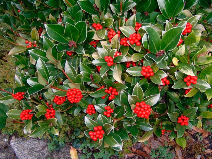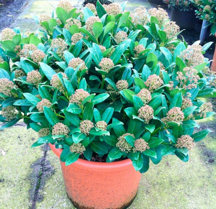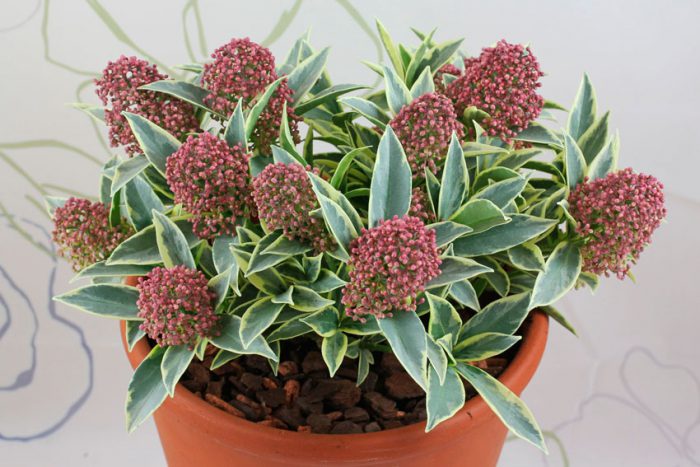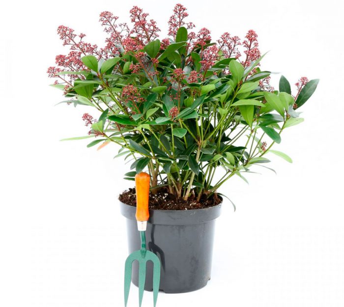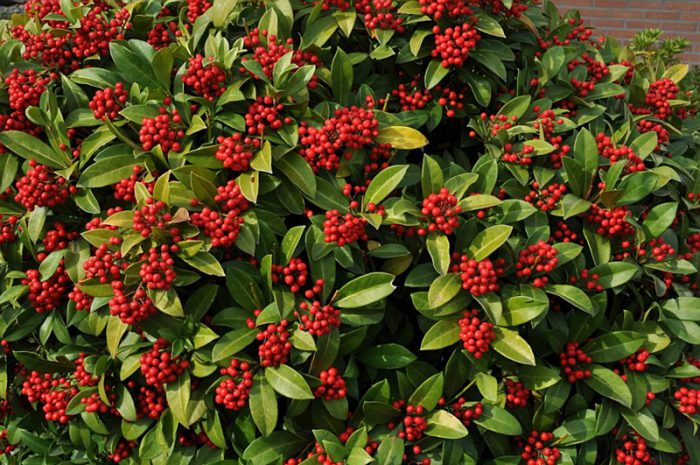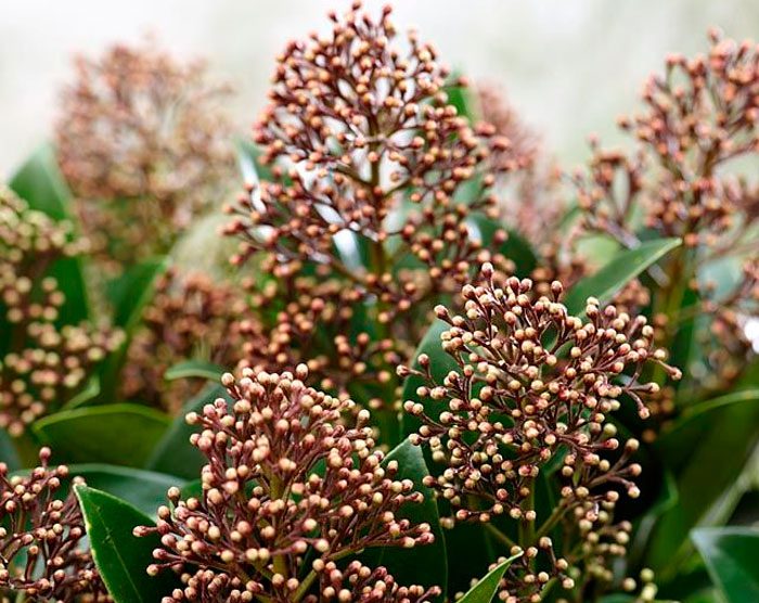 zimozielony krzew skimmia (Skimmia) ma bezpośredni związek z rodziną Rutaceae (Rutaceae). Pochodzi z Azji Południowo-Wschodniej, a także Japonii.