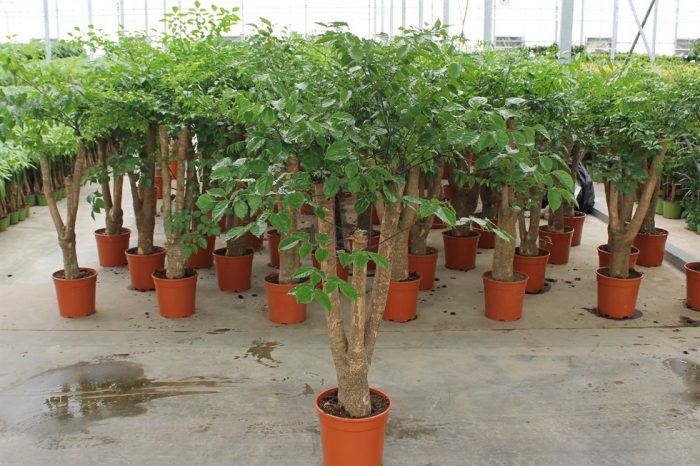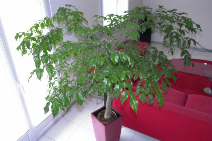 taka roślina jest zwartym drzewem o cienkim, wyraźnie zaznaczonym pniu i koronie liściastej. Pierzaste błyszczące płytki liściowe o dość dużych rozmiarach są pomalowane na Zielono. Taka roślina zaleca się ozdobić jasny i wystarczająco duży pokój.