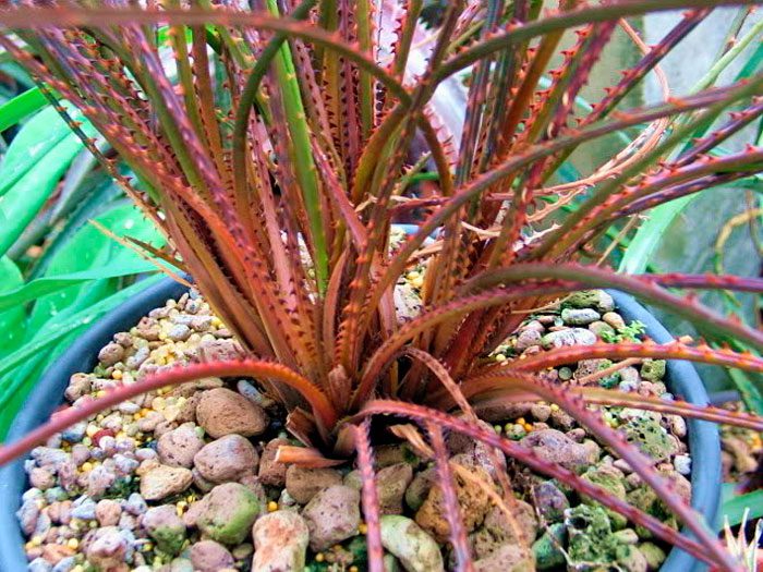 tak duża roślina wieloletnia jest rozeta, na krawędziach wąskich liści znajdują się liczne kolce. Kwiaty wyrastają z rozety liściowej. Do ich uprawy odpowiednie są przestronne chłodne pokoje, szklarnie lub ogrody zimowe. Nadaje się do uprawy jako roślina ampel.