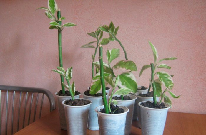 sadzonki należy wykonywać wiosną lub latem. Aby to zrobić, odetnij górne części łodyg (długość od 8 do 10 centymetrów), a następnie włóż je do ciepłej wody, aby wypłynął sok. Po wyciągnięciu z wody i pozostawieniu na zewnątrz do wyschnięcia. W zależności od wielkości takiego cięcia jego suszenie może trwać od 1 do 2 dni, a może dłużej. Do ukorzeniania stosuje się prawie suchy perlit lub piasek, a wymagana temperatura powinna wynosić od 20 do 25 stopni. Nie należy przykrywać sadzonek posadzonych do ukorzeniania, ponieważ może to przyczynić się do szybkiego rozwoju zgnilizny. Podczas ukorzeniania zaleca się usunięcie liści z sadzonek poniżej, aby uniknąć ich gnicia. Pełne ukorzenienie nastąpi po 2-3 tygodniach.