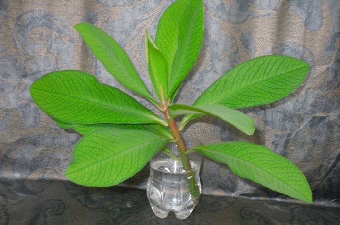 można łatwo rozmnażać w marcu lub kwietniu sadzonki łodyg . Łodyga jest odcinana od górnej części łodygi i musi mieć 3 międzywęźla. Cięcie należy przez pewien czas zanurzyć w pojemniku z ciepłą wodą, aby zatrzymać mleczny sok. Wysuszoną łodygę należy sadzić w mieszaninie złożonej z piasku i torfu. Pamiętaj, aby przykryć go przezroczystą czapką. Do ukorzeniania nadaje się również woda.