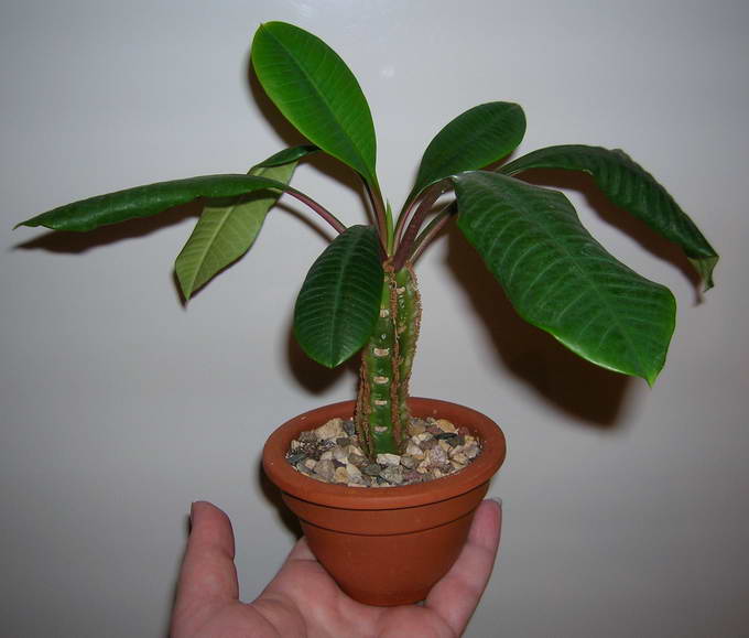 Euphorbia jest przesadzana tylko wtedy, gdy jego system korzeniowy przestaje pasować do doniczki.