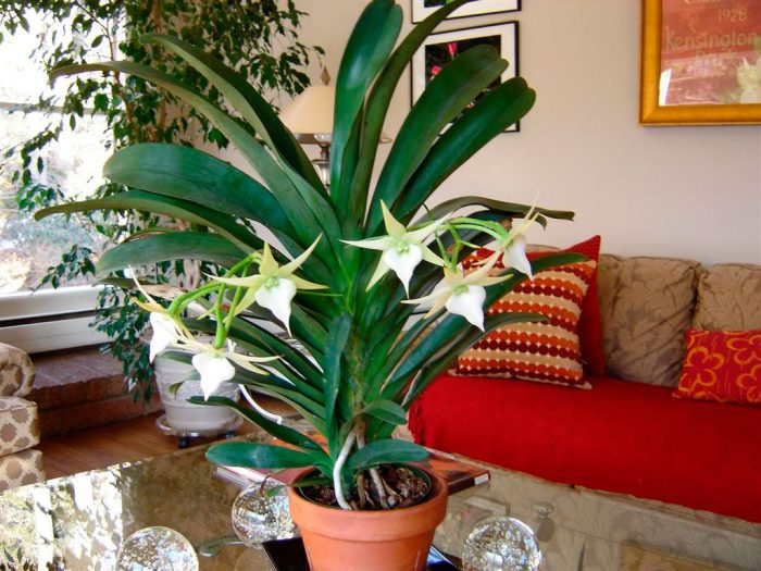 wśród licznych i różniących się od siebie przedstawicieli rodziny storczyków szczególnie wyróżnia się Orchidea zwana angrecum (Angraecum). Rodzaj ten skupia około 200 różnych gatunków. W warunkach naturalnych można je spotkać w wilgotnych lasach tropikalnych Afryki, na Madagaskarze, a także na innych wyspach Oceanu Indyjskiego. Kwiaty w kształcie gwiazdy są zwykle pomalowane na biało. Mogą być również małe lub dość duże (średnica od 3 do 10 centymetrów), jak na przykład u najbardziej popularnych gatunków ― Angrecum Magdalena i Angrecum Półtorafut. Na powierzchni liści i kwiatów znajduje się specjalna powłoka woskowa, która czyni tę roślinę szczególnie atrakcyjną. Tak więc kwitnący krzew angrecum jest bardzo spektakularnym i niepowtarzalnym widokiem.