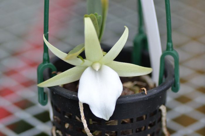 tak więc latem angrecum potrzebuje umiarkowanej temperatury od 20 do 25 stopni. Wraz z nadejściem okresu zimowego zaleca się nieznaczne obniżenie temperatury zawartości O 4 lub 5 stopni, ale nie zapominaj, że w pomieszczeniu, w którym znajduje się taka orchidea, nie powinno być chłodniej niż 16 stopni. Konieczne jest systematyczne nawilżanie z opryskiwacza i podlewanie, podczas gdy konieczne jest upewnienie się, że mieszanina gleby jest lekko wilgotna przez cały czas. Do podlewania należy użyć wody o temperaturze pokojowej, podczas gdy najlepiej jest wziąć deszcz lub dobrze osadzony, ale można również użyć przegotowanej. Aby zmniejszyć parowanie wilgoci z podłoża, zaleca się umieszczenie niezbyt grubej warstwy torfowca na jego powierzchni. Pomoże to również utrzymać dobrą przepuszczalność powietrza w glebie.