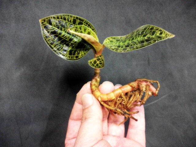 taka miniaturowa orchidea ma pełzające pędy, które również silnie rozgałęziają się i osiągają wysokość tylko od 7 do 8 centymetrów. Aksamitne płytki liściowe mogą być barwione w różnych odcieniach od zielonkawo-szarego do Szmaragdowego. Na ich powierzchni znajdują się złote, mieniące się w świetle żyły. Kwiaty rośliny są nieokreślone i bardzo małe. Po kwitnieniu rozeta umiera, a jednocześnie powstają dzieci (procesy boczne). Rośliny te są uprawiane w kolekcjach, a także w ogrodach zimowych.