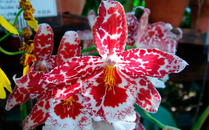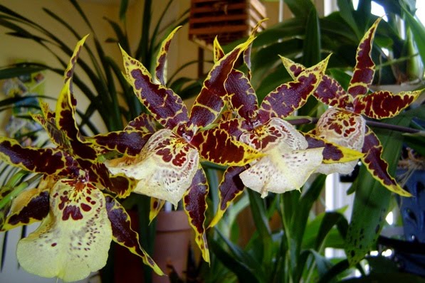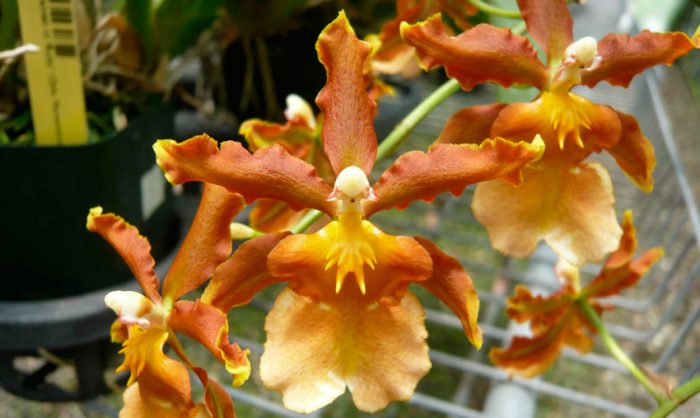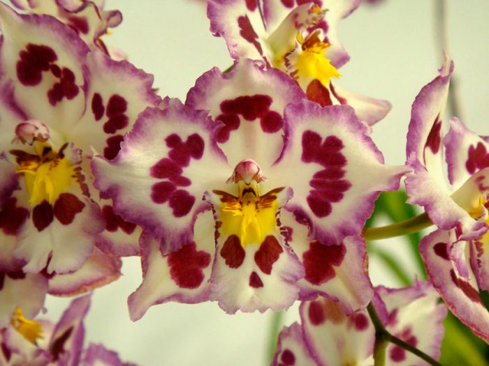 ta hybryda też nie jest skomplikowana. Otrzymuje się go przez skrzyżowanie odontoglossum i ślimaka. Kolor kwiatów to różne kombinacje żółtych i czerwonych kwiatów.