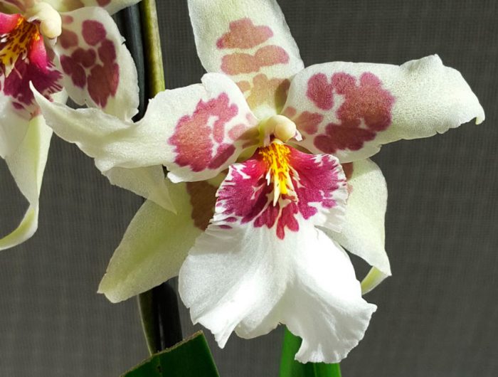 jest to złożona hybryda uzyskana przez krzyżowanie ślimaka, miltonii i odontoglossum. Ta elegancka orchidea może mieć od 5 do 20 dość dużych kwiatów na szypułce, które najczęściej są pomalowane na Czerwono, różowo lub żółto. Kwitnie wystarczająco długo, około 8 tygodni. Początek kwitnienia przypada na koniec okresu zimowego i wiosennego.