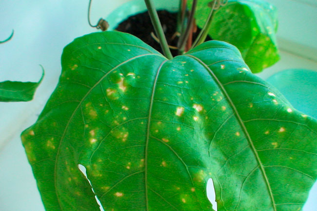 na tej roślinie mogą się osiedlić mszyce , wełnowce , przędziorków , wciornastki albo mączliki . Wszystkie owady, z wyjątkiem wełnowców, można zniszczyć za pomocą takich środków, jak Fitoverm, Aktellik lub Aktar. Środki z cypermetryną pomogą pozbyć się wełnowców, na przykład" cesarz"," arrivo "lub"Inta-vir".