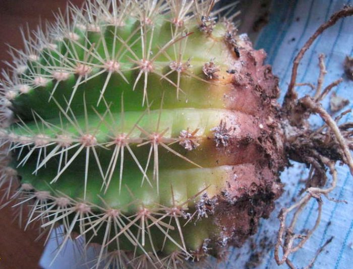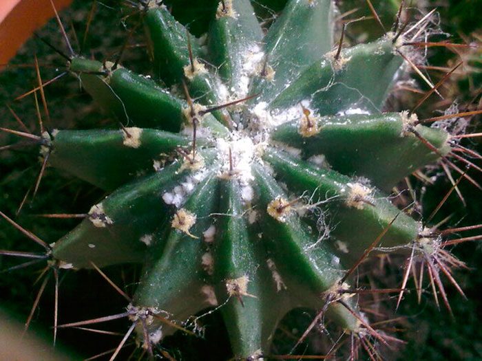 początkowo robaki osiedlają się w systemie korzeniowym i w strefie podstawowej rośliny. Z czasem obserwuje się ich rozprzestrzenianie się na powierzchni łodygi. Można je zobaczyć w otoczkach i między żebrami. Zewnętrznie takie szkodniki są podobne do białawej powłoki, która wygląda jak mała sól lub mąka. Aby uratować kaktusa, przeprowadź leczenie roztworem Confidora lub Aktary, a oni zrzucają mieszaninę gleby. Pestycyd wchłonięty przez system korzeniowy sprawi, że cały krzew będzie niejadalny dla tego szkodnika. W przypadku znalezienia robaków na systemie korzeniowym lub szyi korzeniowej konieczne będzie przeszczepienie krzewu na świeże podłoże. Wyciągnij dotknięty krzew ze starej doniczki, usuń całą mieszankę ziemi z jego korzeni i opuść je wraz z szyjką korzenia do gorącej wody (Około 50 stopni) na kwadrans. Zamiast tego system korzeniowy można zanurzyć w roztworze Actellica, tylko nie utrzymują go tam przez długi czas. Posadź krzew w nowej doniczce lub w sterylizowanym starym. Wlej kilka paczek pokruszonego węgla aktywowanego do świeżej mieszanki gleby, która jest niezbędna do dezynfekcji.