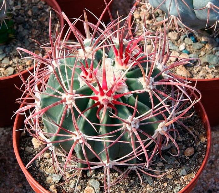 aby Echinocactus Gruzoni urósł normalnie, powinien wybrać odpowiednią doniczkę. Średnica pojemnika powinna być nieco większa niż średnica łodygi. Ponadto nie powinien być bardzo wysoki i dość stabilny. System korzeniowy Echinocactus jest powierzchowny i nie jest bardzo rozwinięty. Pojemniki wykonane z tworzywa sztucznego są najlepsze dla tej rośliny, można również użyć doniczek wykonanych z ceramiki, ale ich powierzchnia powinna być pokryta szkliwem. Jeśli garnek ceramiczny jest nieszkliwiony, wówczas wilgoć odparuje przez ściany, co powoduje chłodzenie systemu korzeniowego. Pamiętaj, że echinokaktusy reagują wyjątkowo negatywnie na hipotermię korzeni.