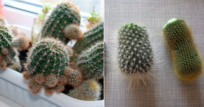 jeśli kaktus jest już bardzo stary, zaleca się odmłodzenie go, a ta procedura jest połączona z rozmnażaniem wegetatywnym. Aby to zrobić, bardzo ostrożnie odetnij górną część krzewu i pozostaw ją na zewnątrz przez pół miesiąca, aby mogła dobrze wyschnąć. Dopiero potem sadzi się go w zwilżonym piasku w celu ukorzenienia. Ta część krzewu, która pozostała po przycięciu w doniczce, również będzie nadal rosła, a na niej pojawi się duża liczba młodych pędów.