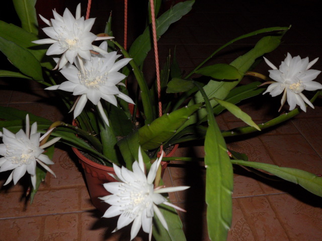 ten gatunek jest naturalny. Pędy takiej rośliny dorastają do 200 centymetrów długości i 12 centymetrów szerokości. Kwitnienie śnieżnobiałych pachnących kwiatów występuje w nocy.
