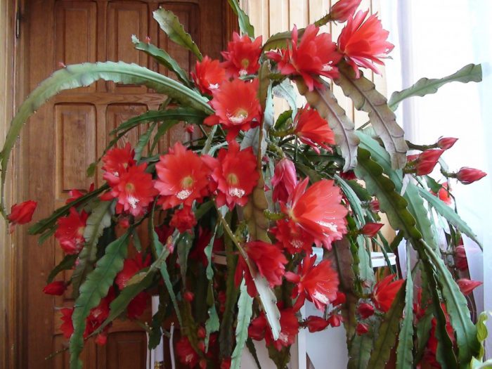 roślina taka jak Epiphyllum ma bezpośredni związek z rodziną kaktusów. W naturalnych warunkach roślinę tę można znaleźć w tropikalnej Ameryce, a także w Meksyku. Często epiphyllums są również nazywane fillokactus, co w tłumaczeniu oznacza "kaktus w kształcie liścia". Rodzaj ten łączy prawie 20 gatunków roślin reprezentowanych przez epifity i krzewy z łodygą liściastą i zdrewniałą podstawą. Liście Epiphyllum są nieobecne, zamiast tego są płaskie i dość szerokie pędy. Gałęzie szkieletowe mogą mieć trójkątny lub zaokrąglony kształt. Roślina ta jest silnie rosnąca i szybko rośnie. Młode pędy są skierowane pionowo w górę, ale z czasem opadają. Takie rośliny, ze względu na duże spektakularne kwiaty, są również nazywane przez botaników "kaktusami orchidei". Po raz pierwszy Kaktus kwitnie po osiągnięciu wieku trzech lat. Dość duże kwiaty mogą mieć długość do 30 centymetrów, a średnica ― do 15 centymetrów. Kwiaty mają kształt lejka i długą rurkę kwiatową. Istnieją gatunki, których pachnące kwiaty mają dość przyjemny aromat.