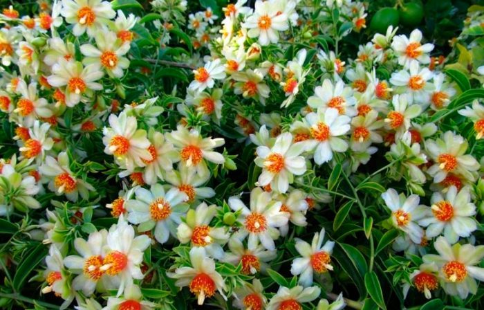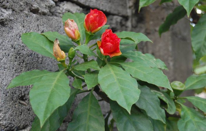 błyszczące skórzaste liście spadają wraz z nadejściem zimy, ale tylko wtedy, gdy w pomieszczeniu jest mniej niż 10 stopni. Łodyga pokryta jest dużą liczbą kolców, których długość może wynosić od 2 do 3 centymetrów. Kwiaty zebrane w kwiatostany są pomalowane na różowo.