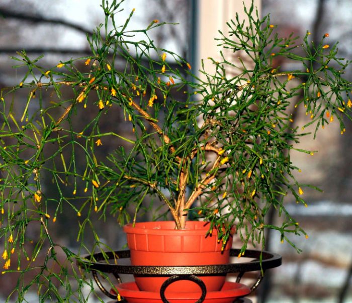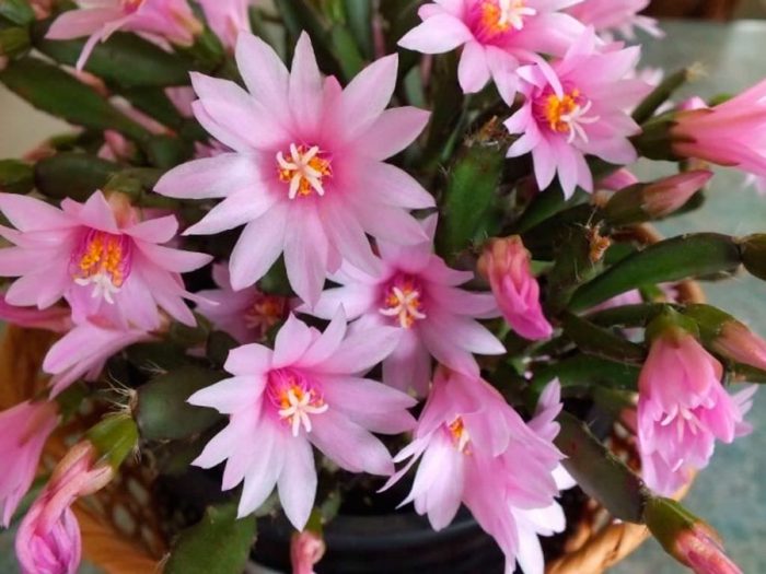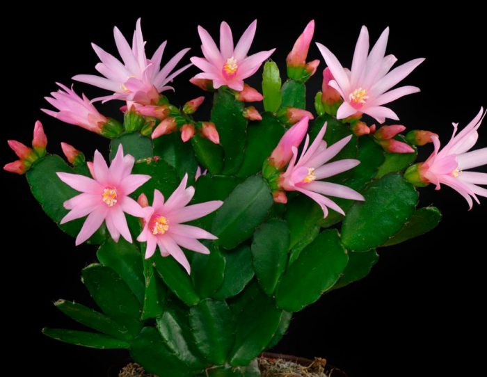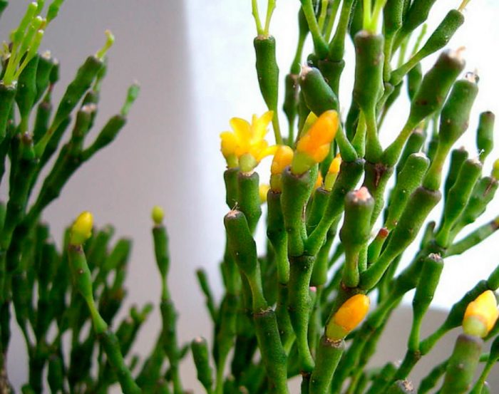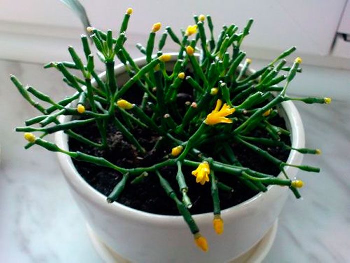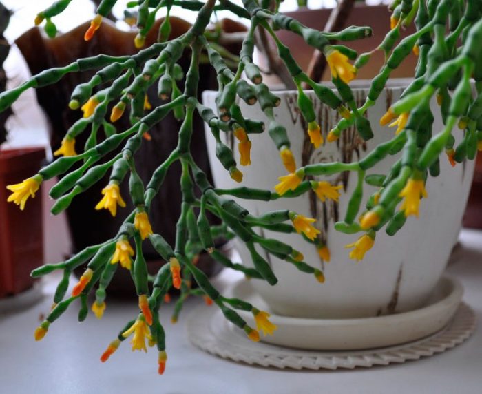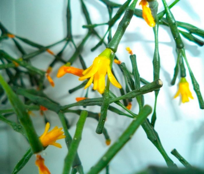 zimą hatiora ma zakładkę pąków kwiatowych, ale do tego potrzebuje chłodu (od 12 do 14 stopni). Krzew kwitnie w kwietniu lub maju.