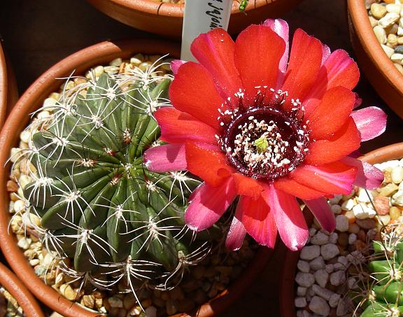 ten kaktus jest równie Kompaktowy. Kulisty kształt łodygi osiąga średnicę od 8 do 10 centymetrów. Ma bardzo dużo ściśniętych żeber, na których znajdują się wyraźnie widoczne guzki otoczki, z umieszczonymi na nich ciemnymi cienkimi kolcami (w liczbie 15 sztuk). Najdłuższe środkowe kolce osiągają długość 7 milimetrów. Gatunek ten jest szeroko rozpowszechniony ze względu na niezwykle piękne i dość duże kwiaty o kształcie kielicha. Mogą być zabarwione na nasycony czerwony lub żółty kolor, a jednocześnie mają szerokie ciemnofioletowe gardła, a także spektakularne pręciki ze śnieżnobiałymi pylnikami.