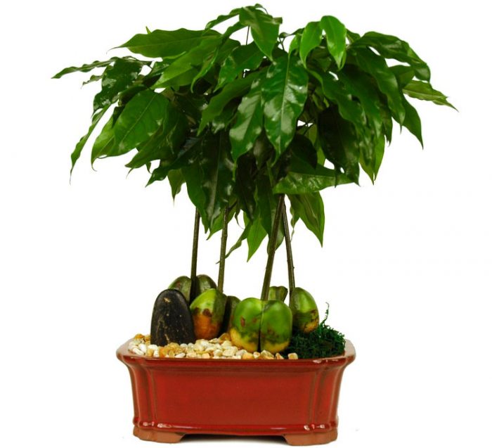 w naturze roślina ta jest wiecznie zielonym drzewem, które może osiągnąć wysokość 10 metrów. Ale gdy rośnie w warunkach pokojowych, jest znacznie mniejszy.