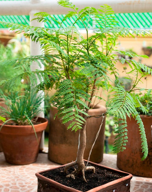 ta roślina całkowicie zrzuca liście zimą lub na początku wiosny. Jednocześnie proces ten jest naturalny i nie zależy od intensywności oświetlenia. Następnie młode liście zaczynają rosnąć na drzewie. Z biegiem lat jacquaranda traci swoją dekoracyjność, ponieważ dolne gałęzie są całkowicie odsłonięte.