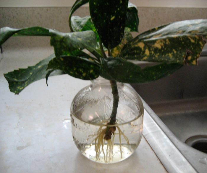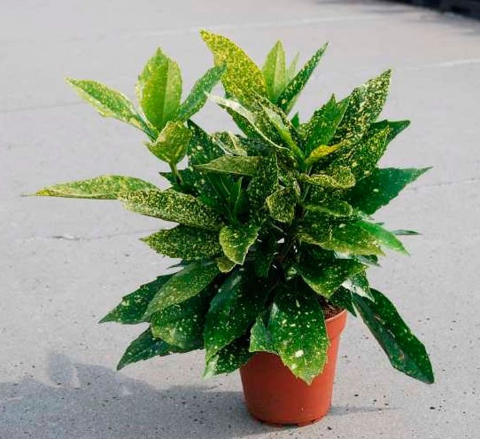 do uprawy aukubów używaj szerokich doniczek, na dnie których koniecznie tworzy dobrą warstwę drenażową. W takim przypadku nadmiar płynu nie stagnuje w podłożu, ponieważ może to prowadzić do powstawania czarnych plam na liściach. Do przesadzania stosuje się mieszankę gleby składającą się z torfu, liści i gleby gliniasto-darniowej, a także piasku (2:2:6:1). Możesz również użyć mieszanki gleby o następującym składzie: piasek, torf, próchnica, darń i gleba liściasta(1:1:1:2:1).